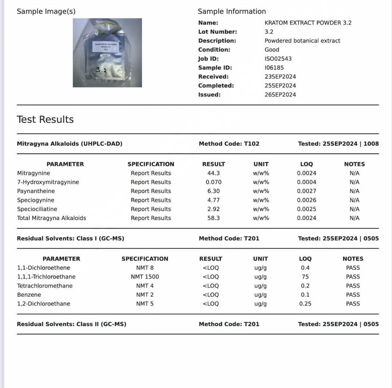 Unlike a lot of other kratom extracts out there, our extracts test at near 10-20% or more for secondary alkaloids such as paynantheine, speciogynine , speciocilatine (in addition to the mitragynine, and 7 hydroxy mitragynine present as the primary alkaloids)